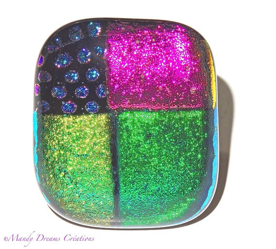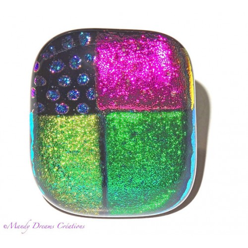 Bague créateur en verre dichroïque multicolore qui brille de mille éclats !!